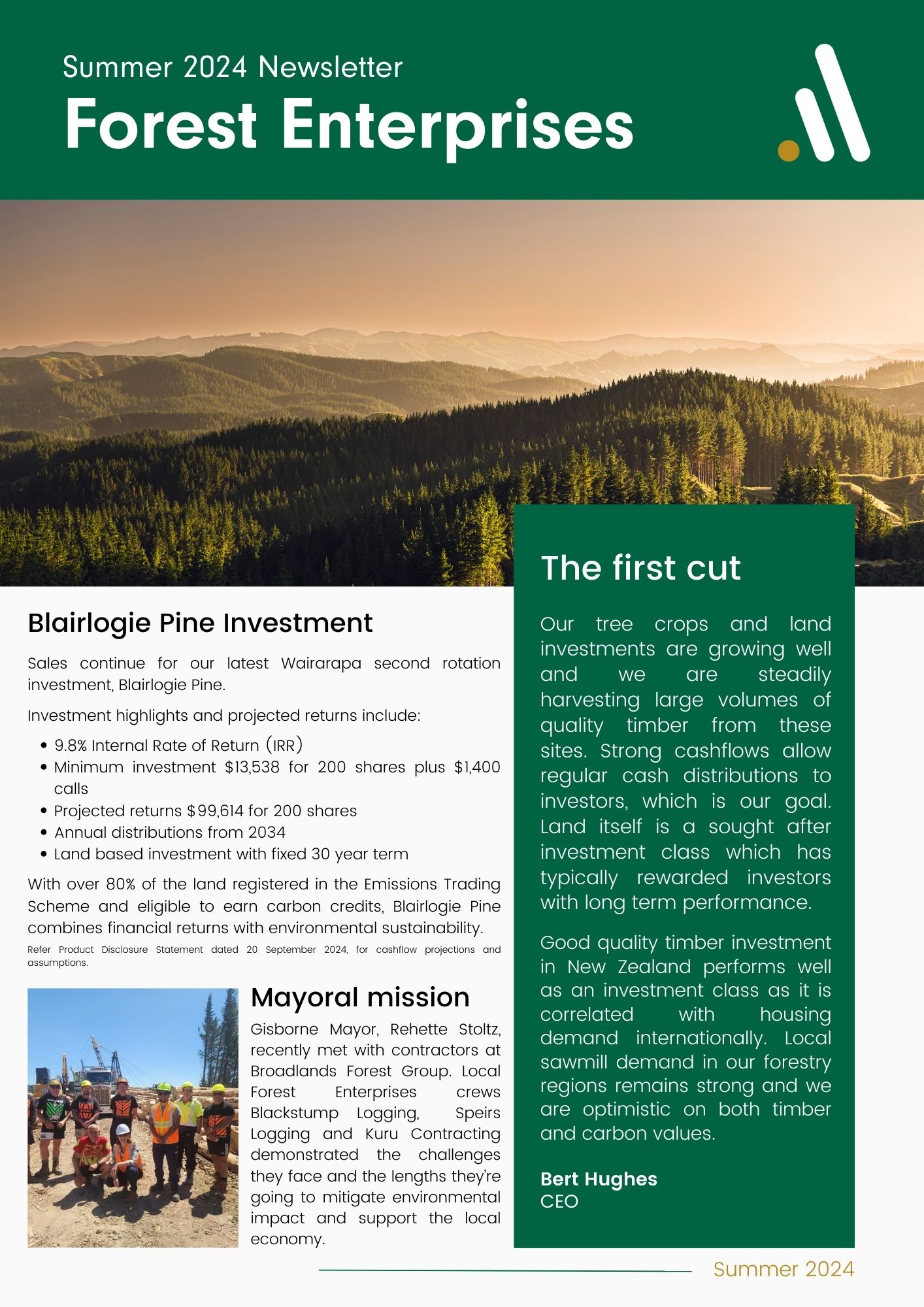- Certainty of log supply – Forest Enterprises can provide another 10-15 years of wood flow certainty.