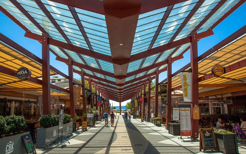 Photo: Rotorua’s Eat Streat – built using the Wood First concept, the central timber structure is a focal point promoting the importance of forestry and wood processing in the Rotorua district.