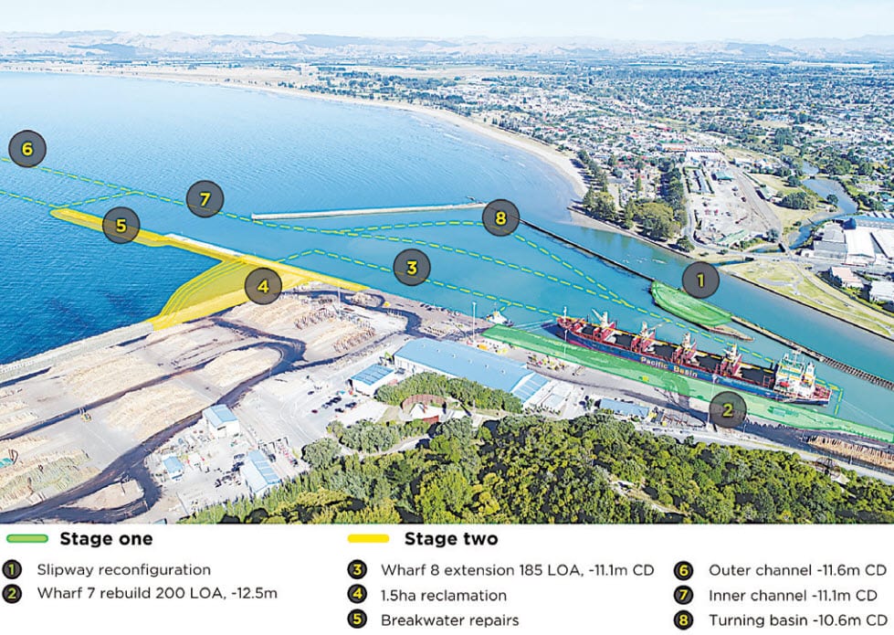 This consent will cover the extension of the existing Wharf 8 structure; about one-and-a-half-hectares of reclamation; dredging the channel and harbour; and the rebuilding of the existing outer breakwater structure.