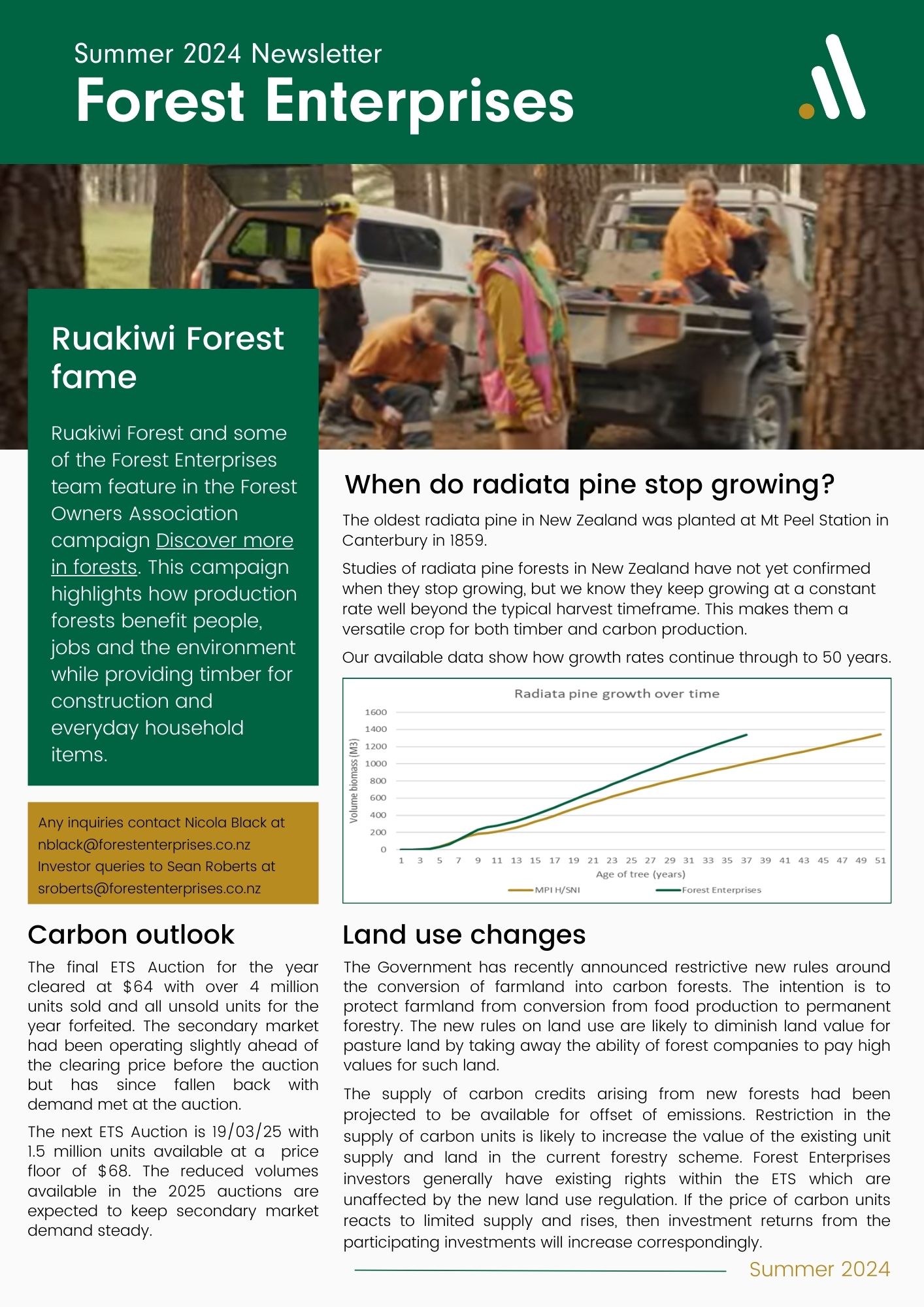 View Larger Image Investor Newsletter: Summer 2024 By Nicola Black|2024-12-11T14:29:20+13:00December 11th, 2024|Forest Enterprises News| Share this item. FacebookLinkedInEmail Related Posts Investor update: Winter 2024 Gallery Investor update: Winter 2024 June 18th, 2024 A swoop to salvation Gallery A swoop to salvation December 21st, 2023 Forest Enterprises hosts ministerial inquiry panel in Gisborne Gallery Forest Enterprises hosts ministerial inquiry panel in Gisborne April 3rd, 2023 Forest Enterprises forests stand up to New Year storms Gallery Forest Enterprises forests stand up to New Year storms February 16th, 2023 Forester has plan to sort steep slopes for the next gen Gallery Forester has plan to sort steep slopes for the next gen February 5th, 2023